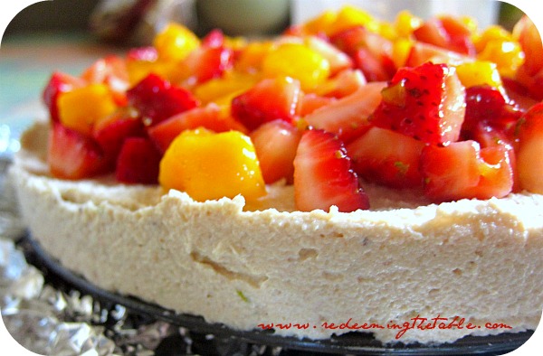 Raw “Cheesecake” with Lime Zested Strawberries & Mangoes