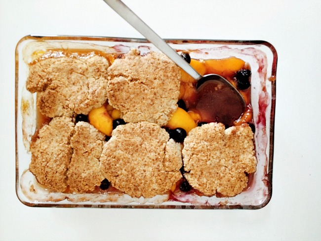 Grain & Dairy Free Peach-Blueberry Cobbler (printable recipe)