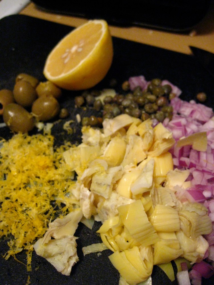 Meanwhile, saute kale in 1 tablespoon of olive oil till tender. You may need to add more oil or even some water. Remove to a small bowl and set aside. Saute chopped up half moon shallots in 2 teaspoons olive oil for 1 minute or so. Remove to small bowl.
