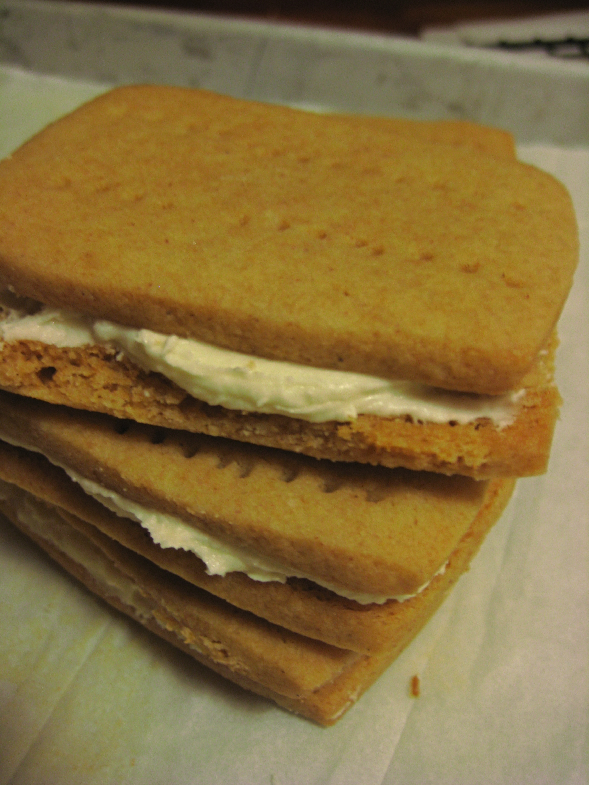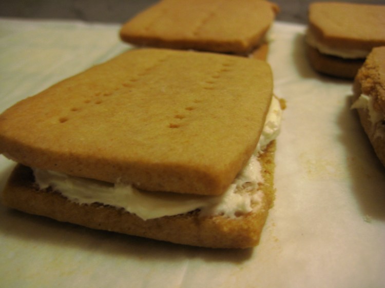 Putting it altogether: Beat white chocolate cream with electric beaters until medium peaks form. Slowly add the raspberry puree. The cream might curdle a bit, but don’t over beat. If you find that the cream isn’t the right consistency, then put the cream in a pastry bag or plastic sandwich bag and place in fridge for a bit. Cut the end and squeeze out about 1 Tb on top of each cupcake. Eat immediately to gain the full experience of the cold raspberry cream with the delicate crumb of the brownie.