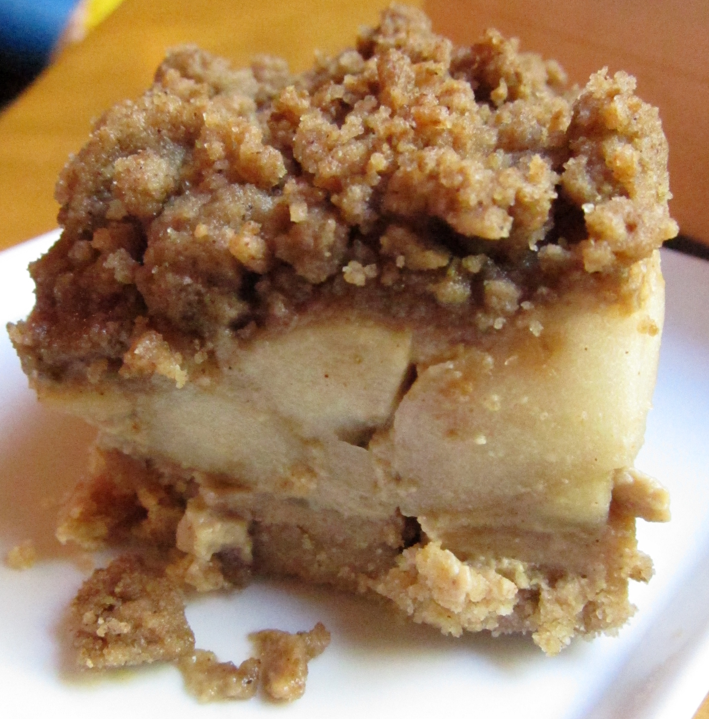 This recipe is adapted from The Good Cookie cookbook. It reminds me of an apple pie baked from Dutch Mothers in Lynden, WA, but without having to deal with the rolling & chilling that comes from making a pie crust. The key is to let it cool to get the best overall taste.