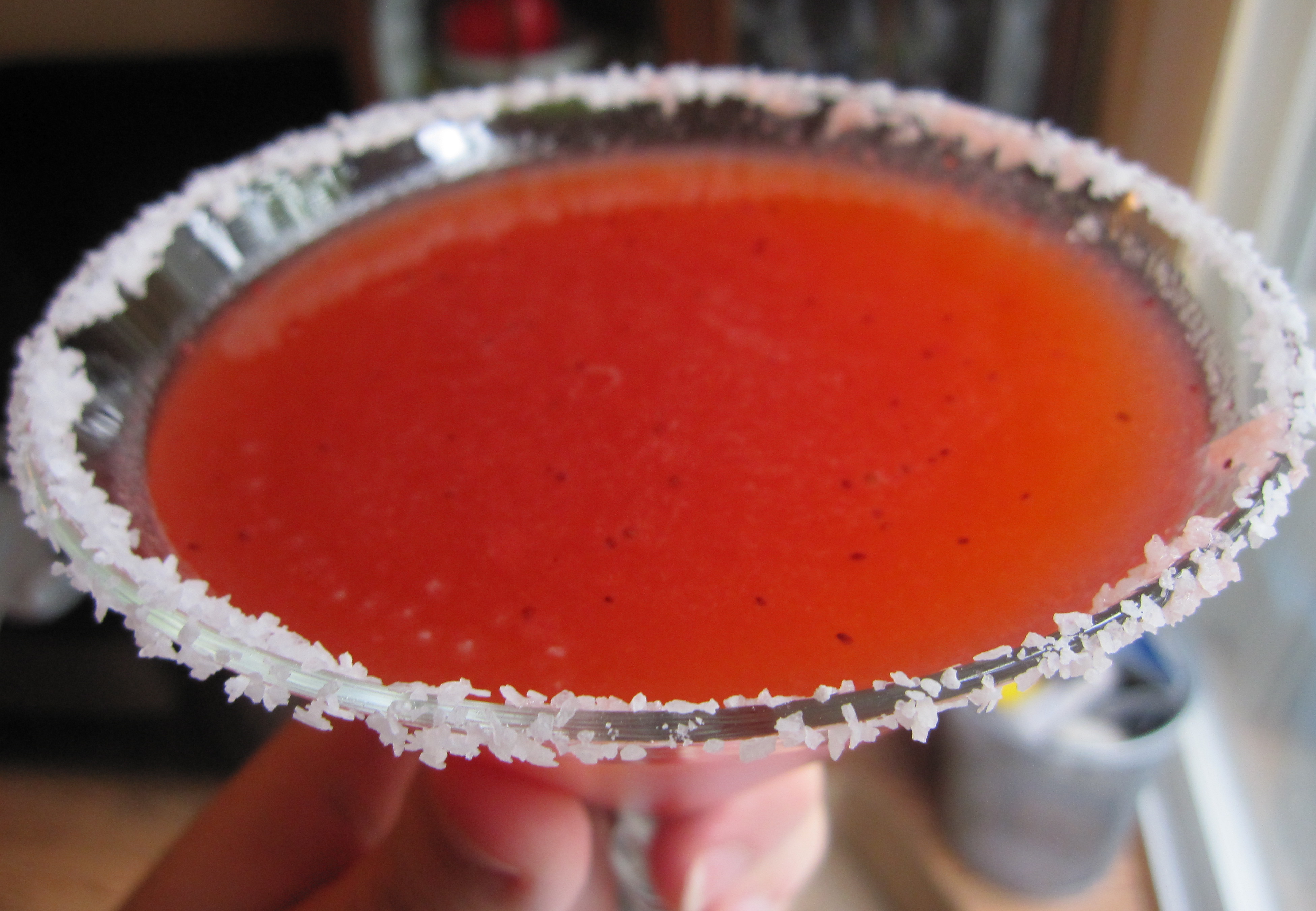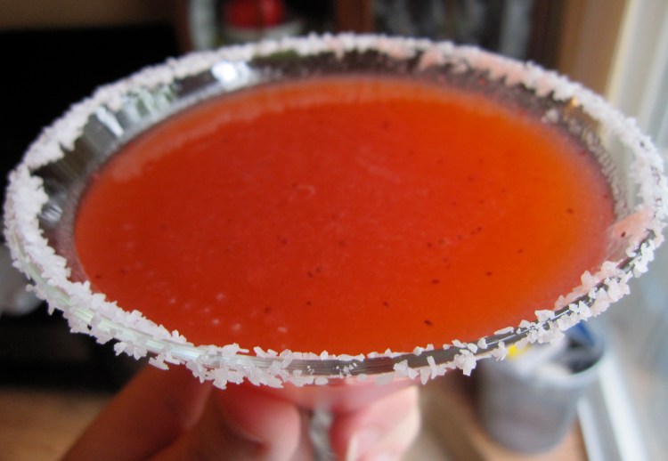 An earwig. Absolutely, positively one of the most disgusting things to be in my mouth. However, did it stop me from eating from the flat of strawberries? No. What it did was it made me the designated cleaner & huller of the strawberries. It’s because they’re that good. With sun on the horizon in the PacNW, or already in clear view in your neighborhood, kick it off right by making these Strawberry Margaritas. And since the recipe uses a strawberry puree you’ll be sure to know it will be earwig free.