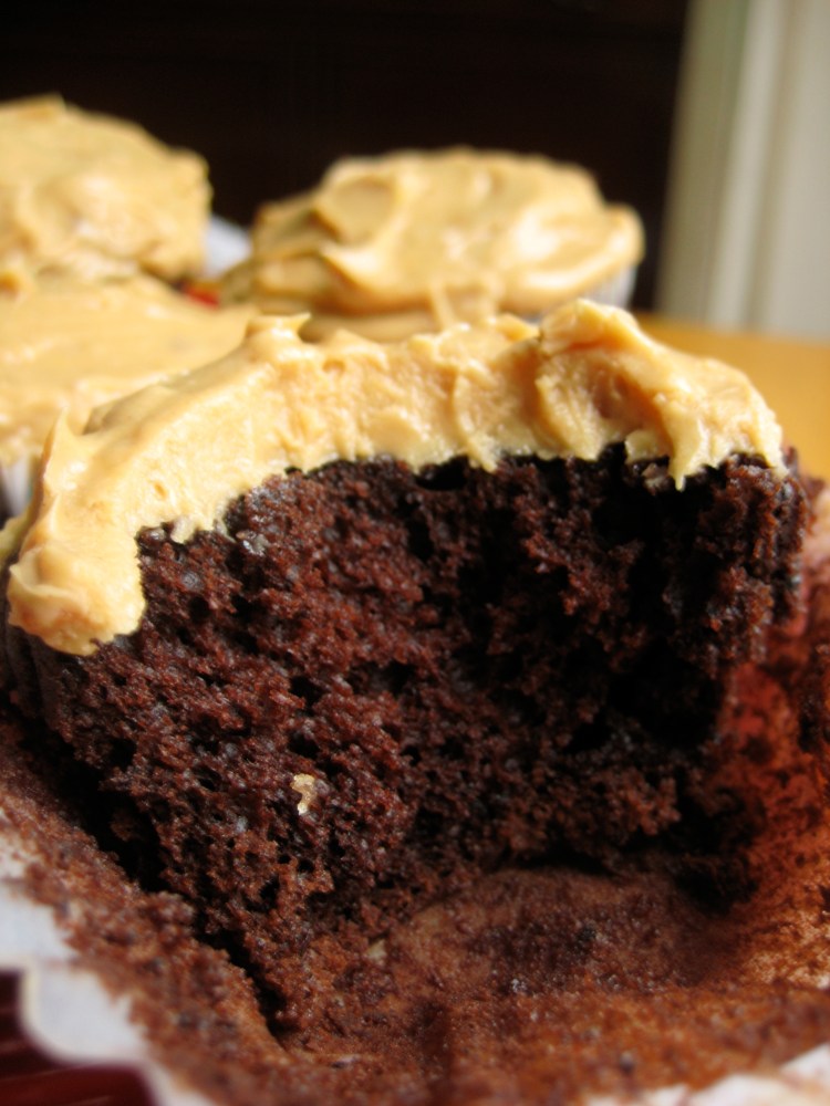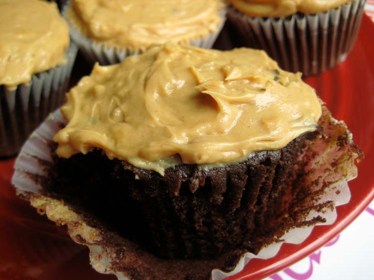 Chocolate Cupcakes with Peanut Butter Frosting (printable recipe)