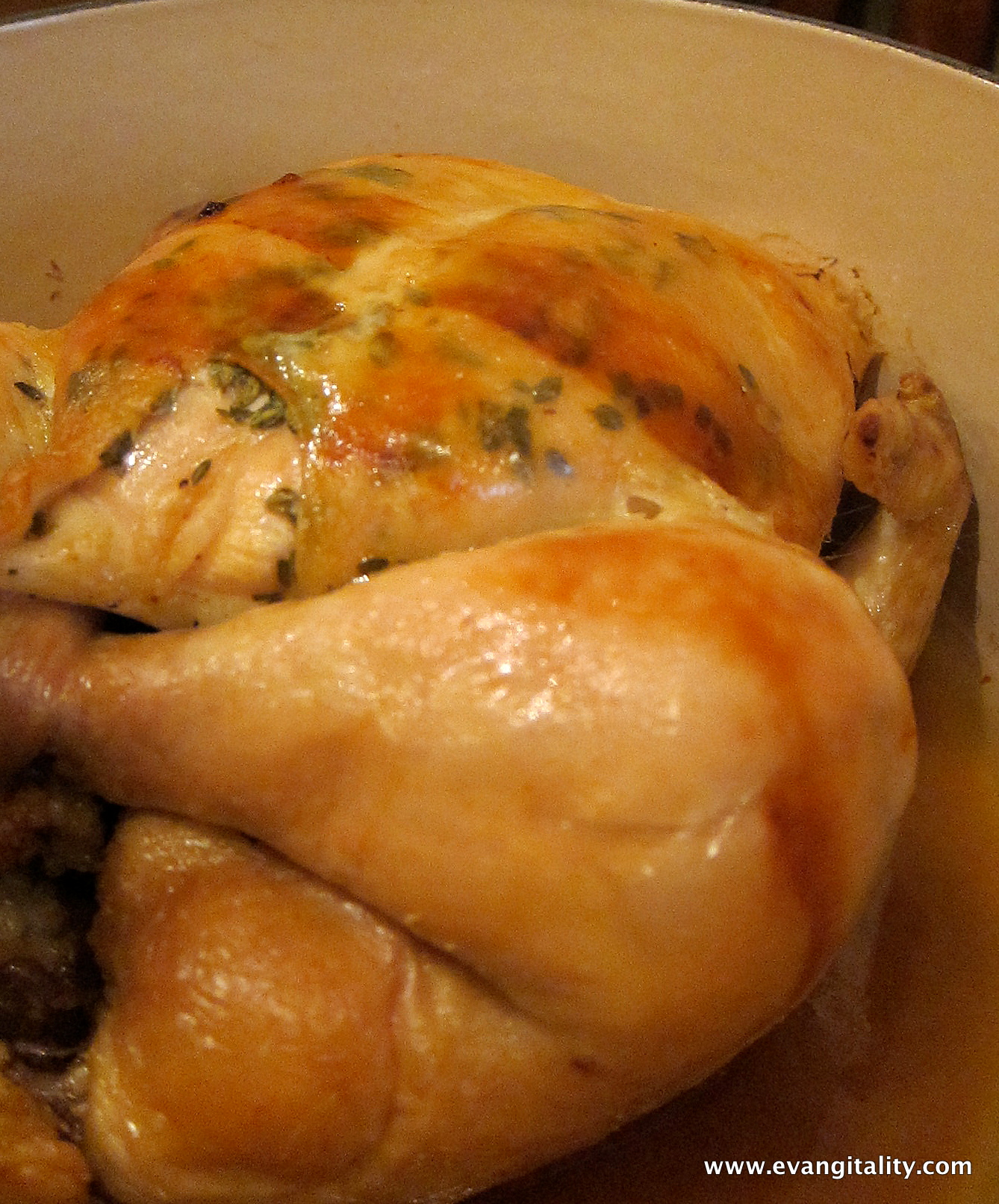 I love roasted chicken, because it appears that you’ve been slaving in the kitchen much longer than you actually did. Plus, take the carcass and turn it into chicken broth.