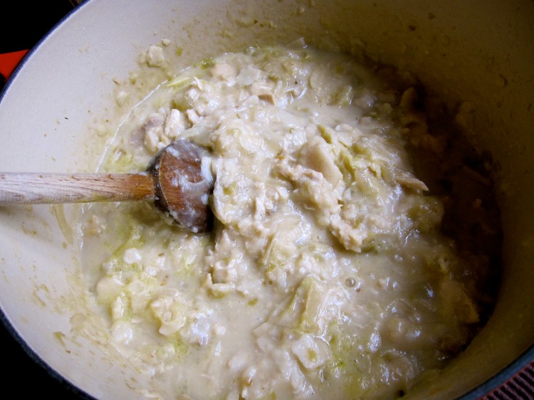 I used a can of pureed green chilis from Trader Joe’s, which you can add more than one can to make the dish more spicy.