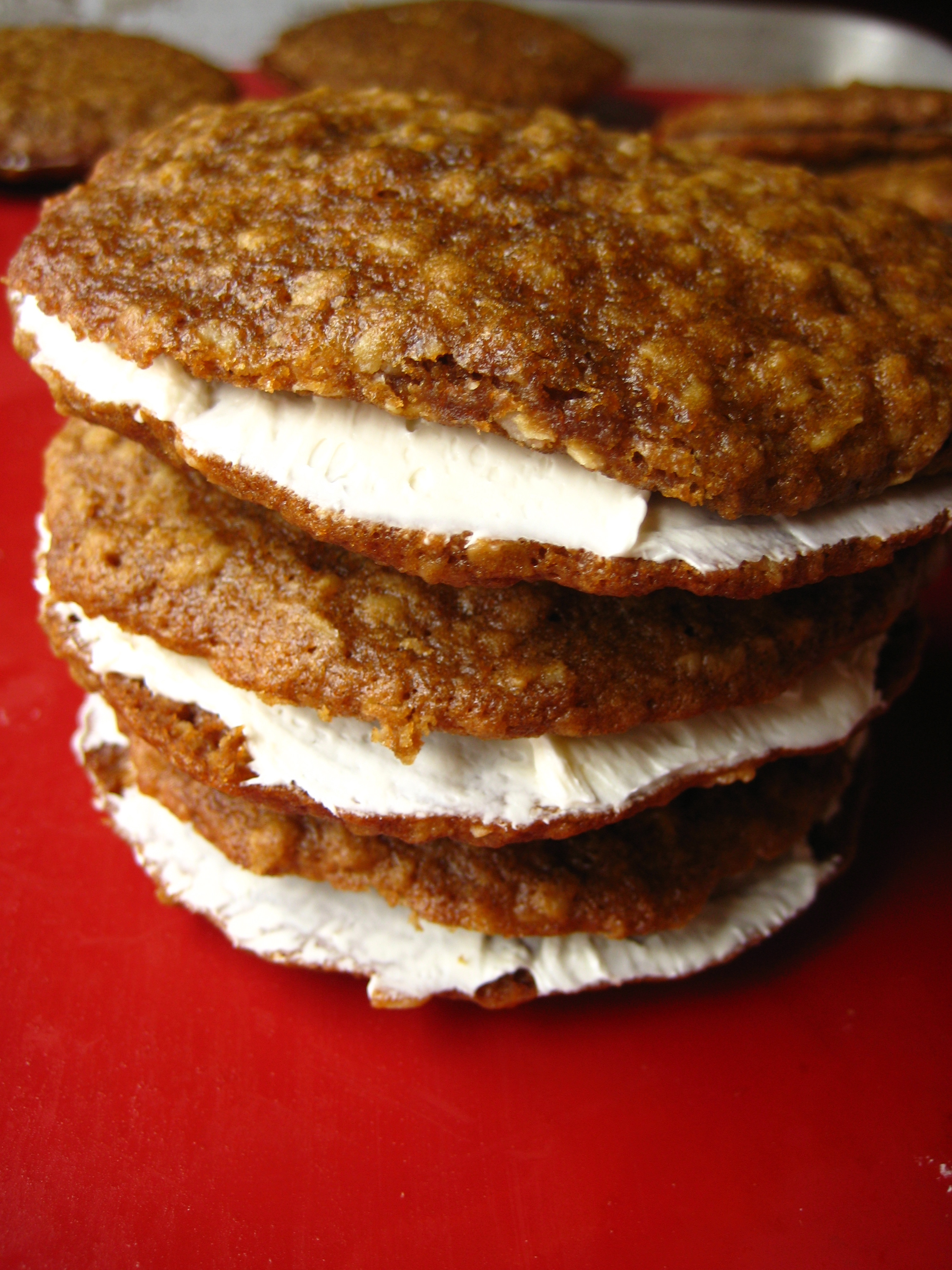 These are great to tie you over and quite filling. If you’re vegan, then try using maple syrup or agave nectar. If you have a peanut/tree nut allergy, you could always use sunbutter.Ingredients: 5 – 6 cups; 17.5 – 21 oz; 500-600 grams rolled oats 2 1/4 cups; 8 1/2 oz; 236 grams medjool dates (seeds out) 1/2 cup hot water 1 cup; 8 oz; 226 grams natural smooth peanut butter 1/2 cup; 6 oz; 170 grams honey 3/4 cup; 3.5 oz; 100 grams almonds 1/2 cup; 2.5 oz; 65 grams oat bran 1/4 cup; 1.25 oz; 34 grams whole wheat flour 2 tsp cinnamon 1 1/2 tsp pure vanilla extract 1 tsp kosher salt Directions: Soak your pitted dates in a bowl with the hot water and cover with a plate for about 10 minutes. Drain the water and dump dates into a food processor. Puree it up. You will need to scrap the sides occasionally. Add the peanut butter to the dates and puree again. While the machine is running, add about 1/3 of the honey (save the rest for later). The mixture will clump into a ball and that’s okay. Remove as much of the date mixture into a small bowl–set aside. Put in the almonds and pulse at 3 second intervals until they are coarsely chopped. In a large bowl, combine 5 cups (or 500 g or 17.5 ounces) of rolled oats, leaving the additional 1 cup of oats aside, oat bran, w.w. flour, almonds & salt. Mix it all up. Put the date puree mixture into the rolled oats bowl. Add the vanilla now & using your hands, begin to mix the ingredients altogether. This will take a bit to incorporate the oats into the date puree. You want the oats to be completely bound by the date mixture. Go ahead and add the rest of the honey to help soak more of the oats & bind it all together–mix some more. Line a half sheet pan with parchment paper and press mixture into the pan. You will want them to be about 3/4 inch thick. Bake at 300 degrees for 20 minutes. The underside of the bars will have more of the toasty look. (You can cut them and turn them over & bake for an additional 5 minutes) Cut them into squares (or bars). Serves about 12-15.