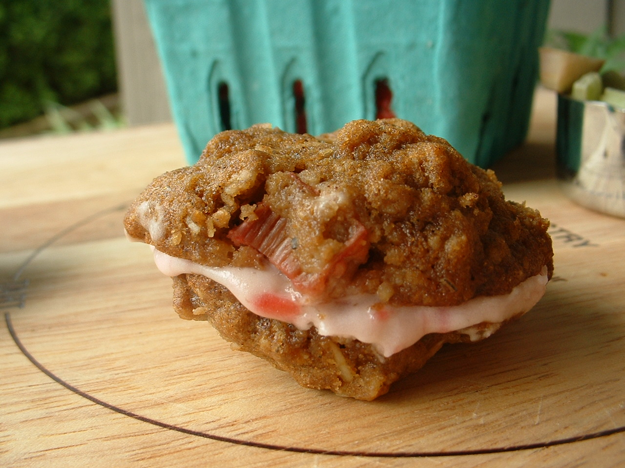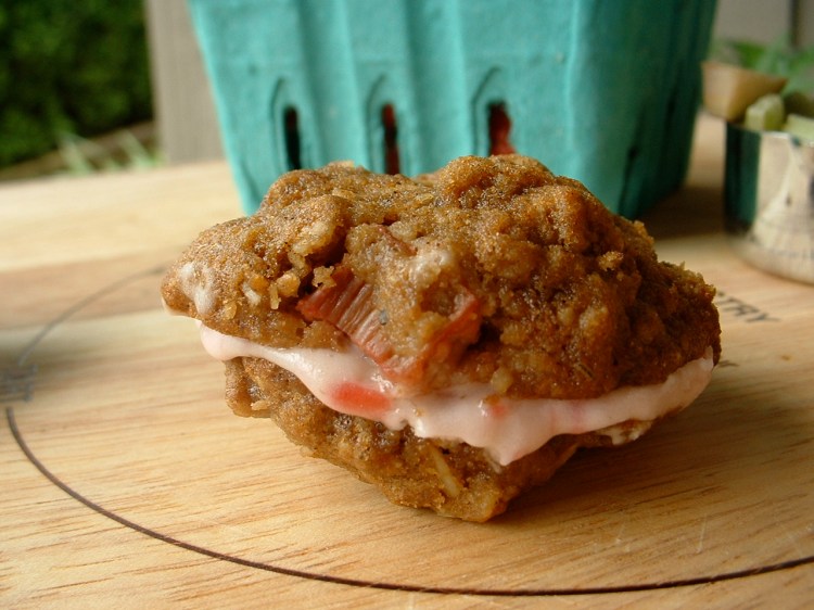 Rhubarb Sandwich Cookies with Strawberry Cream Cheese Filling